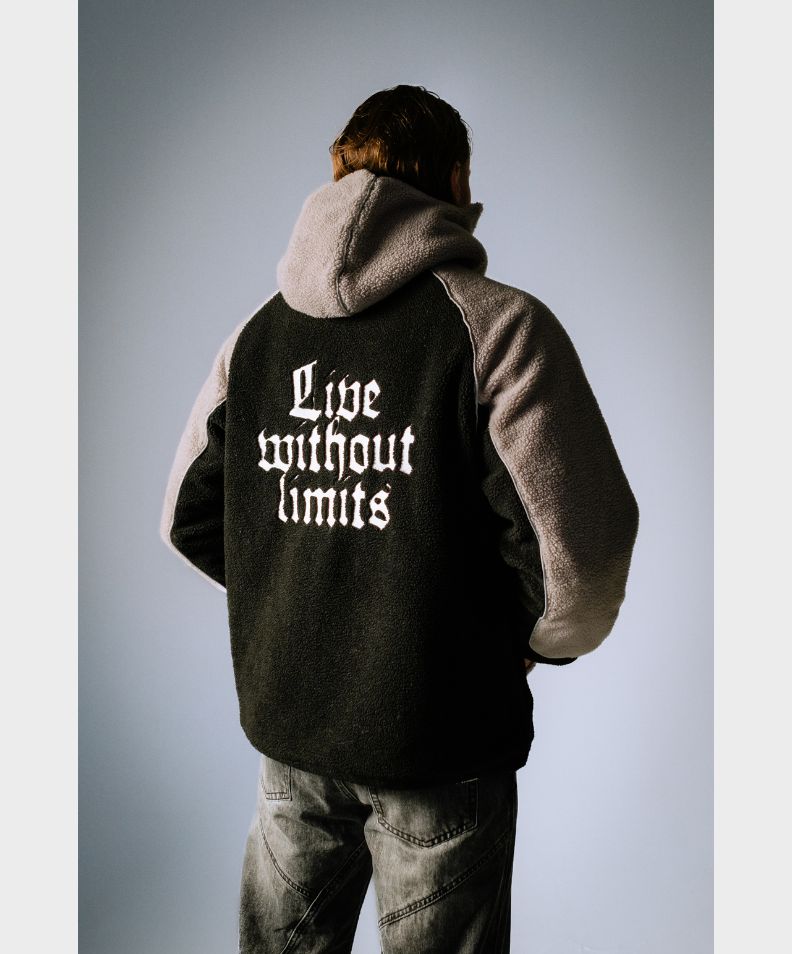 Auf der Rückseite der Jacke: Live without Limits.