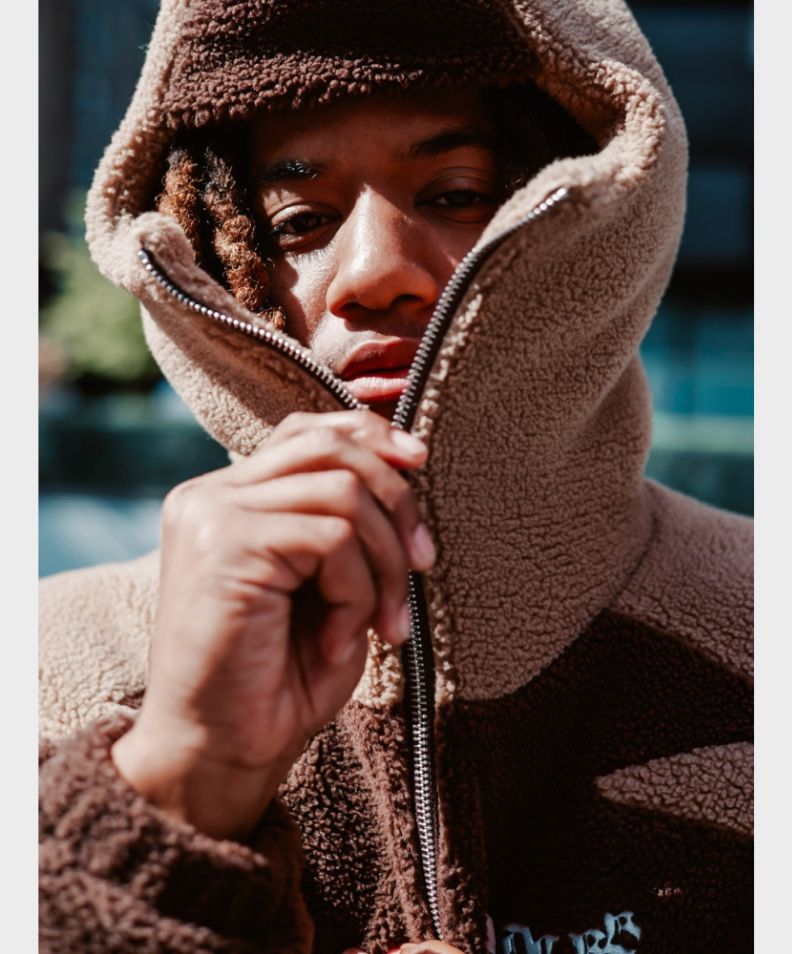 Diese Dark & Light Brown Ninja Fleece-Jacke ist Teil unserer neuen Streetwear-Kollektion DCRB.